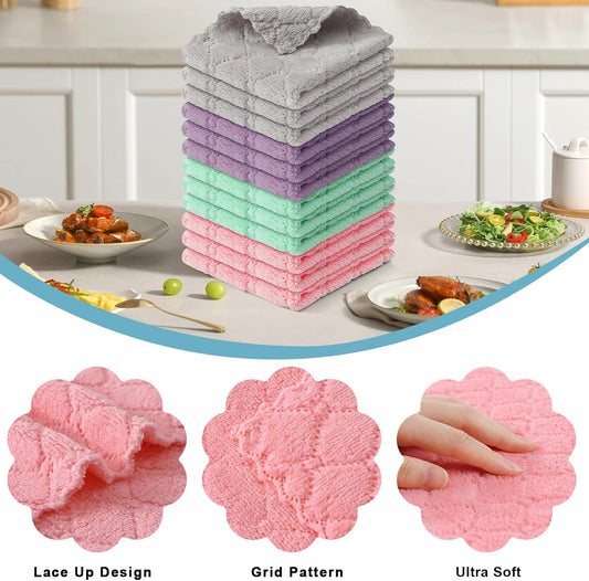 Microfiber Cleaning Cloths - 12 Pack, Ultra Soft & Absorbent Kitchen Towels, 10" x 10", Lint-Free Reusable Cloths