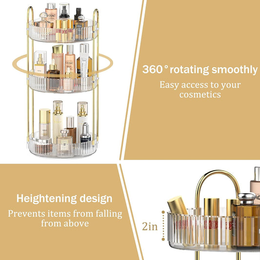 360-Degree Rotating Makeup Organizer with 3 Tiers, Spacious Skincare and Perfume Storage, Versatile Cosmetic Organizer