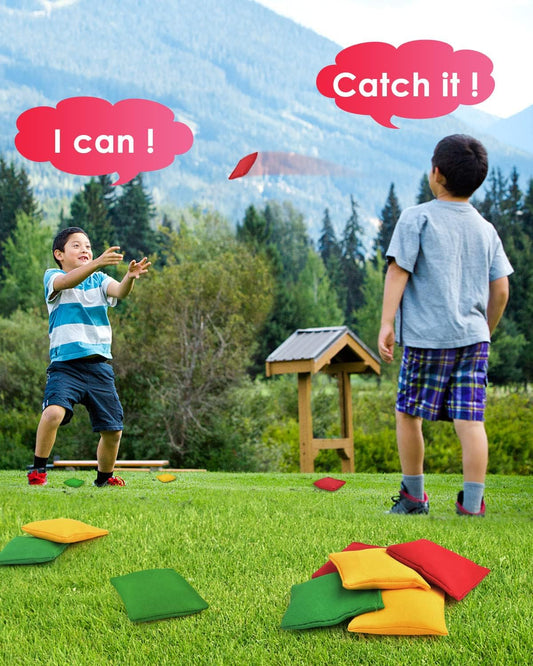 Colorful Mini Bean Bags for Tossing - 12 Pack Canvas Bean Bags for Outdoor Games, Carnival Activities, and Halloween Fun
