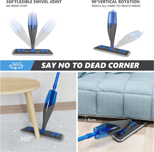 Professional Spray Mop for Efficient Floor Cleaning - Microfiber Flat Mop with Refillable 635ML Bottle and 4 Washable Pads for Hardwood, Laminate, Tile, Wood, Ceramic, and Vinyl Surfaces in Home and Kitchen