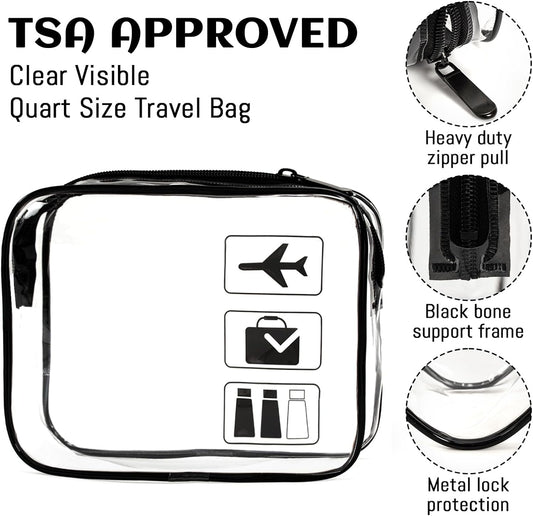 3-Pack TSA Approved Clear Travel Toiletry Bags with Zipper, Quart Size Cosmetic Makeup Bags for Airport Carry-On Essentials