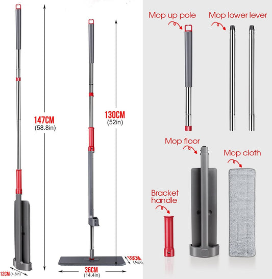 Self-Wringing Microfiber Flat Mop with 6 Washable Pads - Hands-Free Cleaning Solution for Hardwood, Laminate, and Tile Floors - Grey