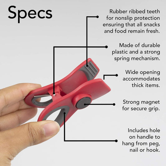 Magnetic Bag Clips for Food Storage - Airtight Seal Grip for Bread, Snack, and Food Bags (Red, Pack of 20)