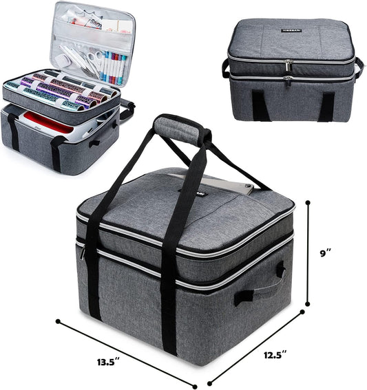 Double-Layer Carrying Case for Cricut EasyPress 2 (12"x10" and 9"x9") Accessory Pocket, Heat Press Mat Compatibility