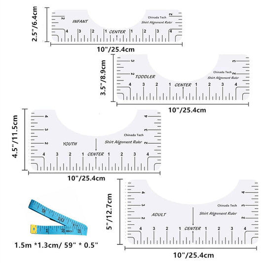 5 Pack T-shirt Ruler Guide for HTV Vinyl Heat Transfer Vinyl and Sublimation, T-Shirt Alignment Tool for Cricut,