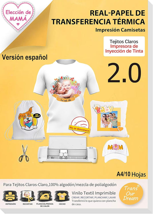 Tru-Iron Heat Transfer Paper - Light Fabrics (10 Sheets, 8.5" x 11") - Printable Iron-On Transfers Inkjet Printers