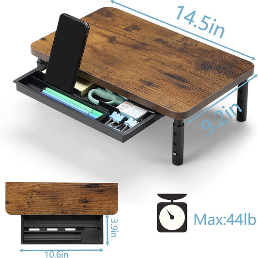 Height Adjustable Monitor Stand with Storage Drawer - Ergonomic Wood Desk Organizer for Office and Home
