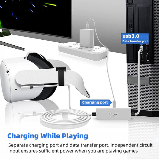 16FT Oculus Quest 2 Link Cable with Separate Charging Port, USB 3.0 Type A to C, Ultra-Durable Design for VR Headset and Gaming PC - White