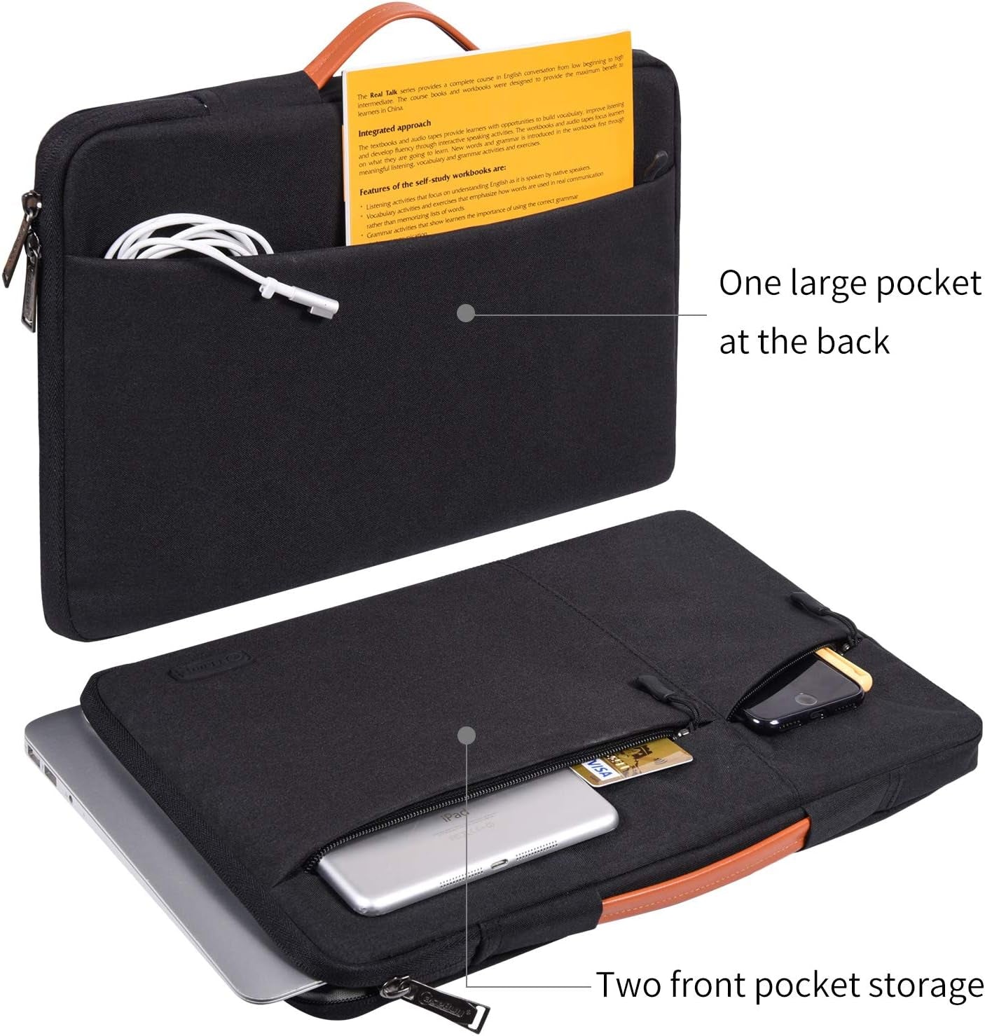 - ENOUGH SPACE STORAGE & SMOOTHLY ZIPPER - Two pockets in front and one large pocket in back, enough space to keeping, mouse, cable, cellphone, memory cards, external hard drive, pens etc. Sleeve bag with double zipper can be fully opened easily access your tablet/laptop
