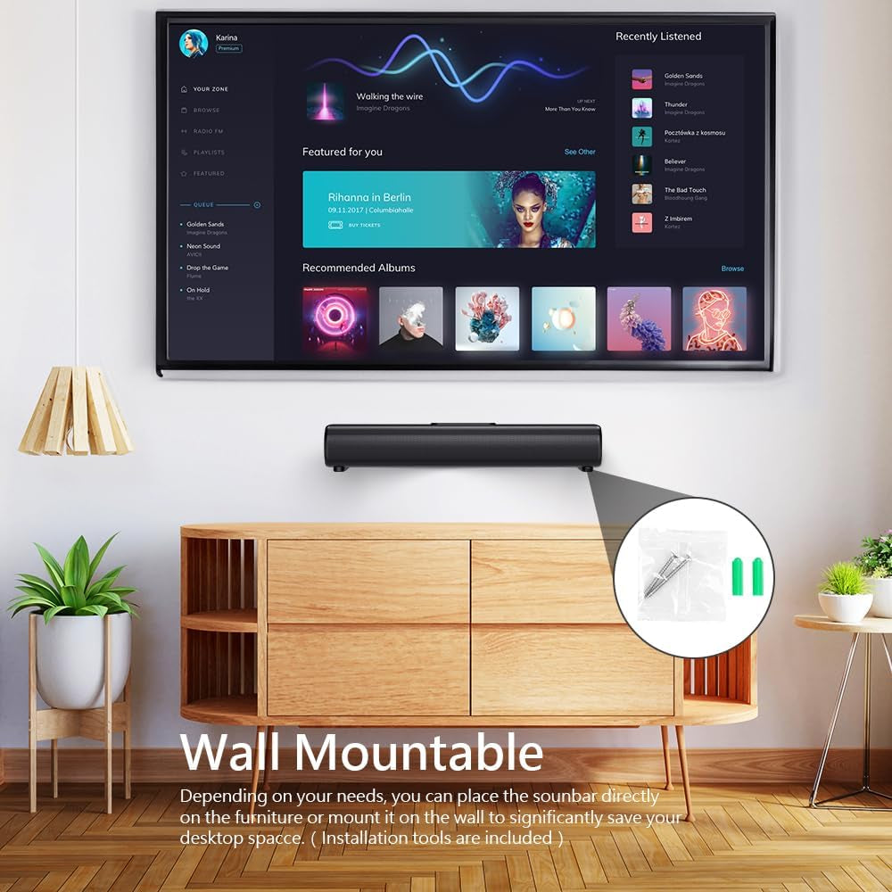 - ♫【Mini Soundbar but Powerful Stereo Sound】Built-in double horn, with DSP bass technology, loud volume, bass boost, with 40W high-performance.Whether it is playing TV, movies, games, or music, it will bring you an immersive sound experience.