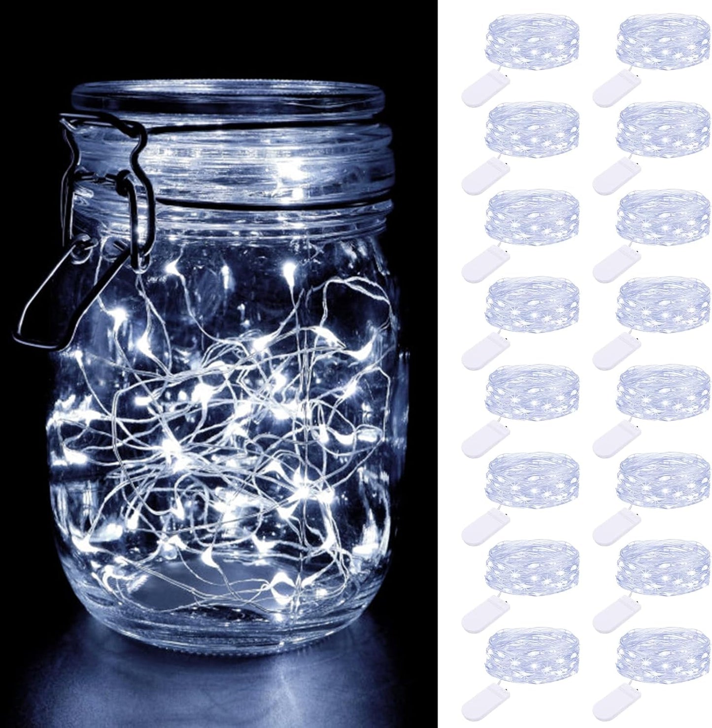 16-Pack Battery-Powered Fairy Lights, 7FT 20LED Mini String Lights, Waterproof Silver Wire Twinkle Lights for Indoor and Outdoor Decor