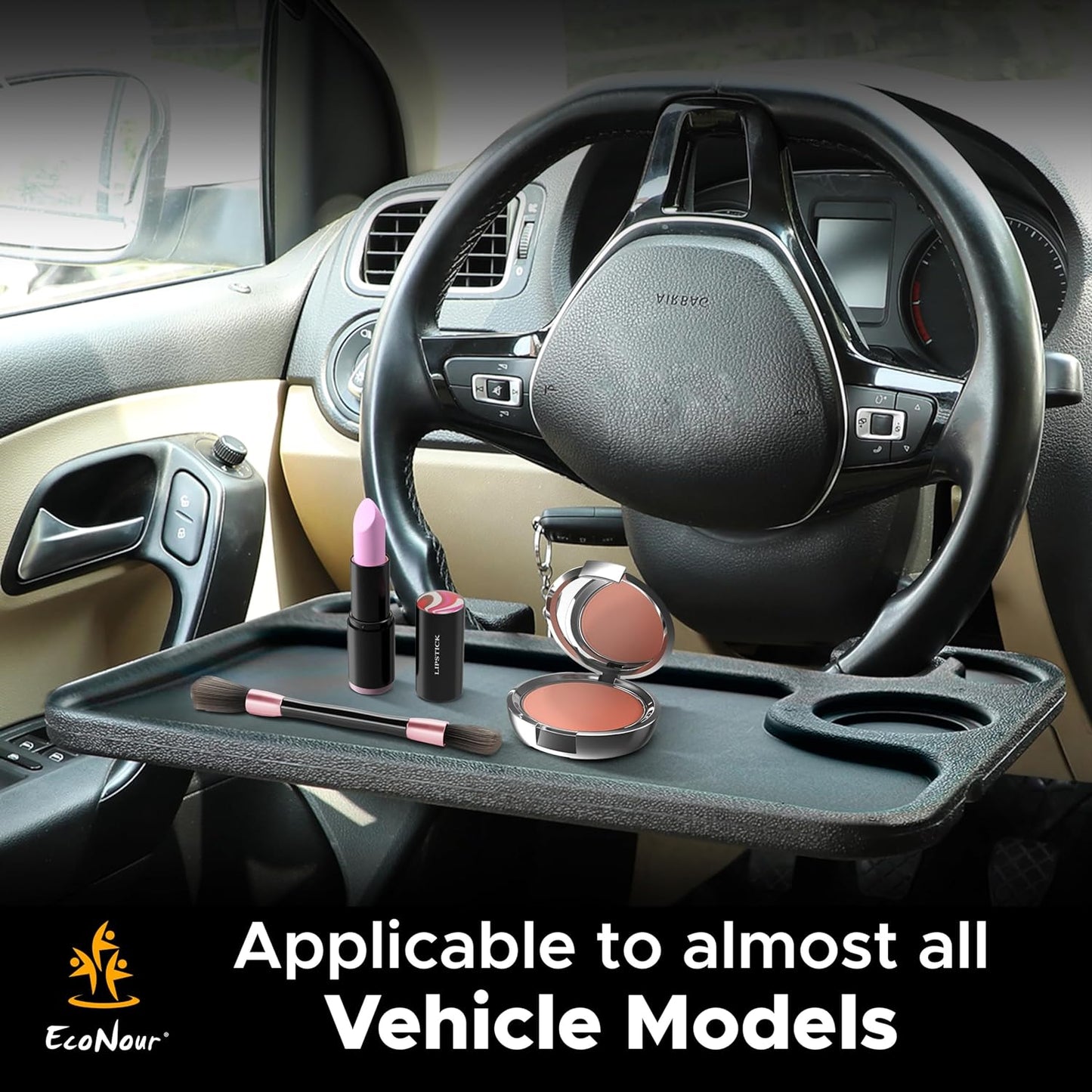 EcoNour Portable Steering Wheel Desk is the Answer! Which is the most important and affordable car accessory that is perfect for Writing, Reading, Working, and Eating.