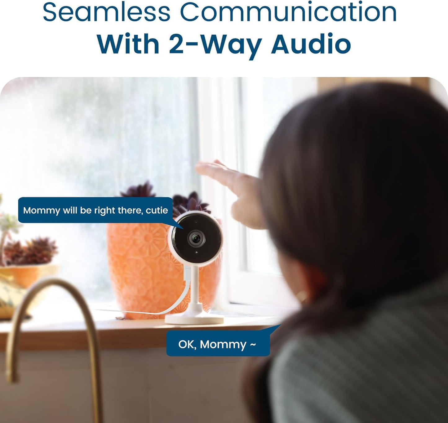 - 【Auto Night Vision & 2-Way Audio】 With 6 IR LEDs in complete darkness and soft light of this indoor camera, you can see what's going on day and night. You also can turn off via the smart camera APP. Our wireless security camera allows two-way communication with your loved ones via your smartphone at anytime, anywhere. (WIRED Indoor Camera: It's a Corded Wi-Fi security camera, and not a battery camera.)