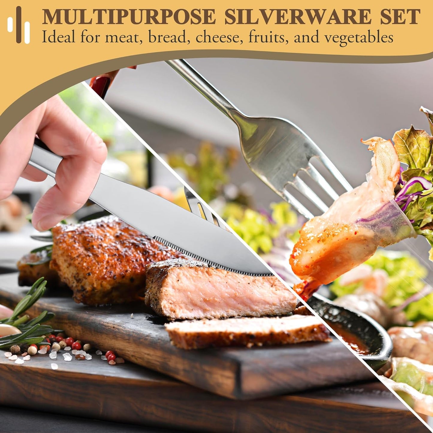 - 【PERFECT FOR USE】: This set is ideal for family daily use, parties, gatherings, family dinners, candlelight dinners, banquets, Thanksgiving, BBQ, wedding,s and other formal occasions. Also apply to apartments, cabins, homes, kitchen, camping, hotel, restaurant, eatery, bistro, etc, or when you need an extra flatware set