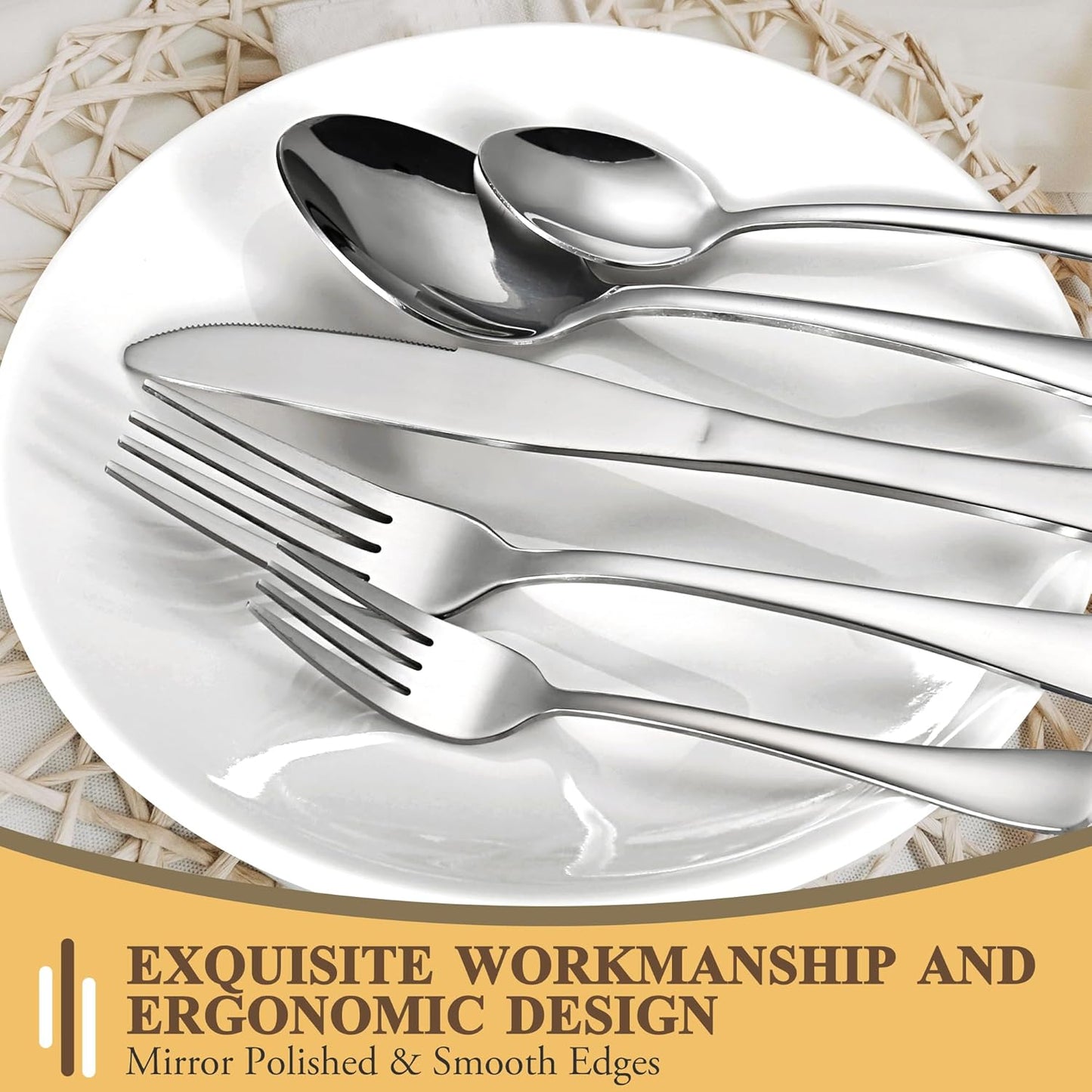 - 【MODERN & ELEGANT DESIGN】: Modern and elegant design makes it enough to match all of your dinnerware or tableware. Also superior quality makes this silverware set suitable for kitchens, restaurants, parties, and everyday meals