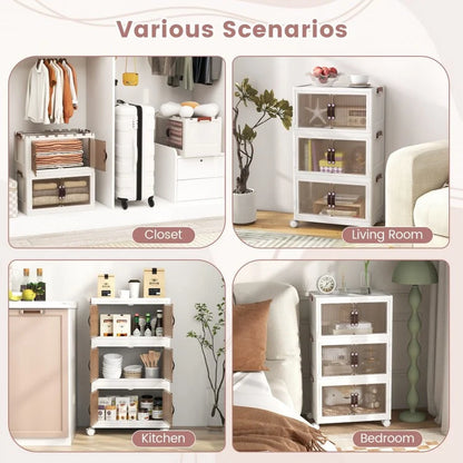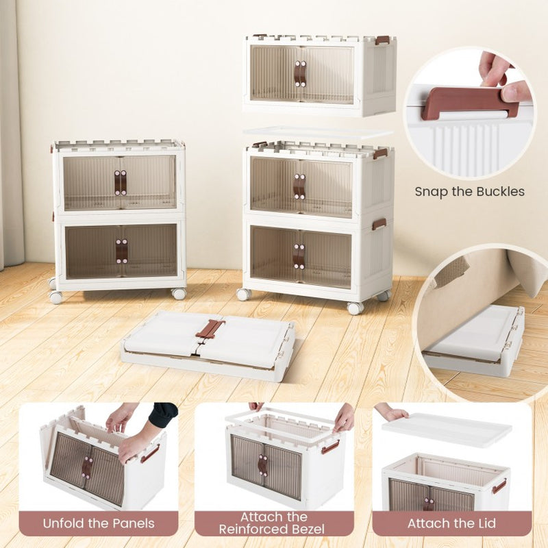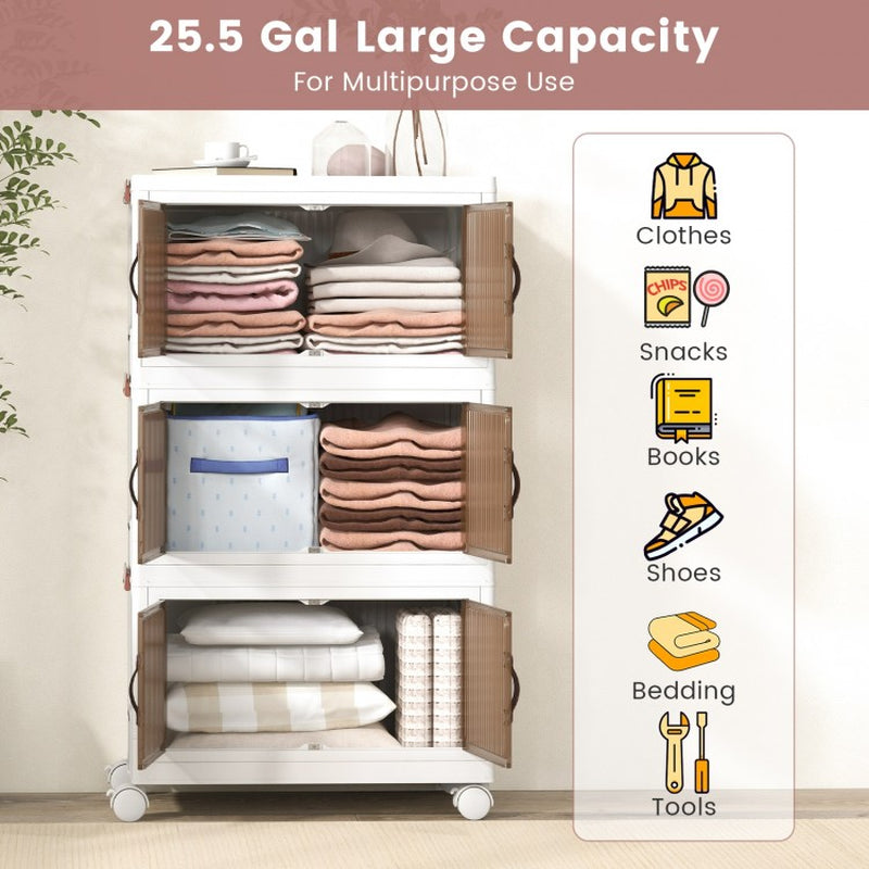 25.5/60 Gallon 3-Tier Stackable Storage Bins with Magnetic Doors and Lockable Casters