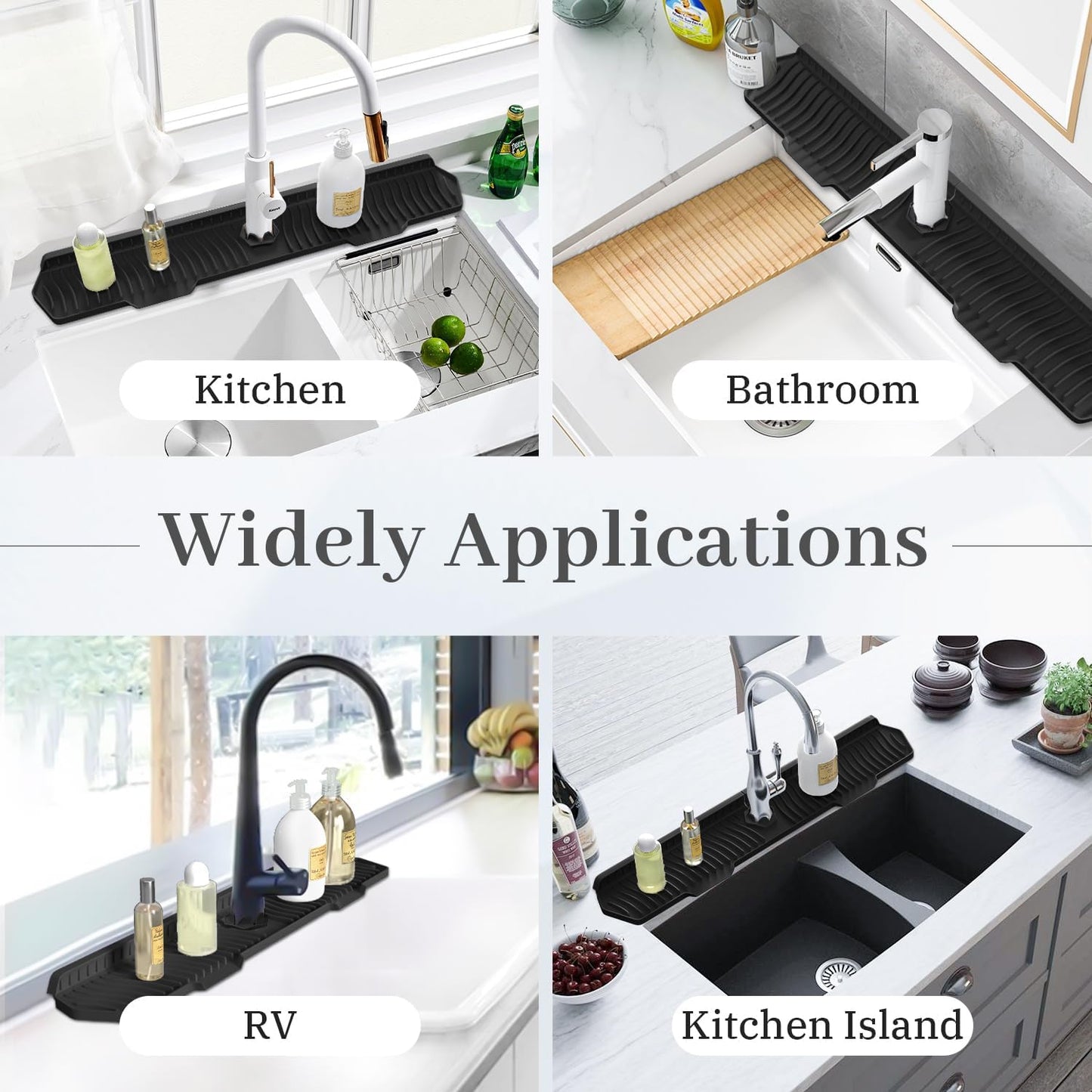 - 【Keep Faucet Base Dry and Clean】The kitchen sink splash guard behind faucet prevents water stains from the faucet splashing or leaking. Silicone draining mat can be used almost anywhere there's a faucet, such as kitchen, bathroom, laundry tub, RV kitchen sink, farmhouse. No more wiping the faucet base endlessly from now on.