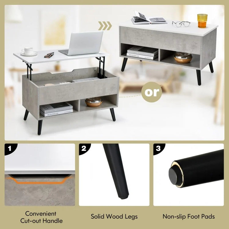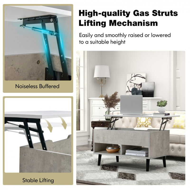 31.5-Inch Lift-Top Coffee Table with Concealed Storage and Dual Open Shelves