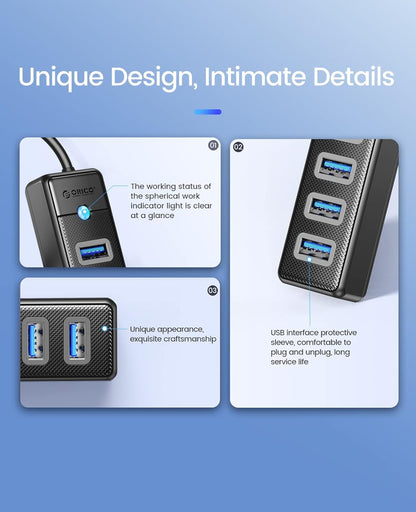- 【High quality material】ORICO 7 Port USB Hub is equipped with a high-performance host chip, making data transmission more stable and efficient, in addition to built-in current protection device, the shell is made of abs material, so that the Usb splitter has the advantages of lightweight, moisture-resistant, corrosion-resistant, but also has a longer life.