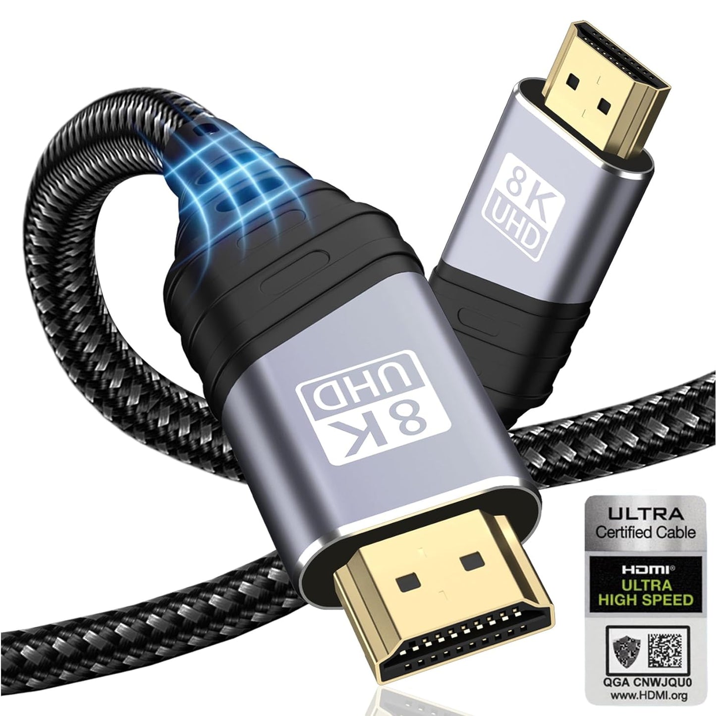 8K HDMI 2.1 Ultra High Speed Cable - 48Gbps, 8K@60Hz, 4K@120Hz, Compatible with HDTV, DTS:X, Dynamic HDR, Dolby Atmos