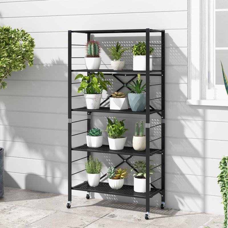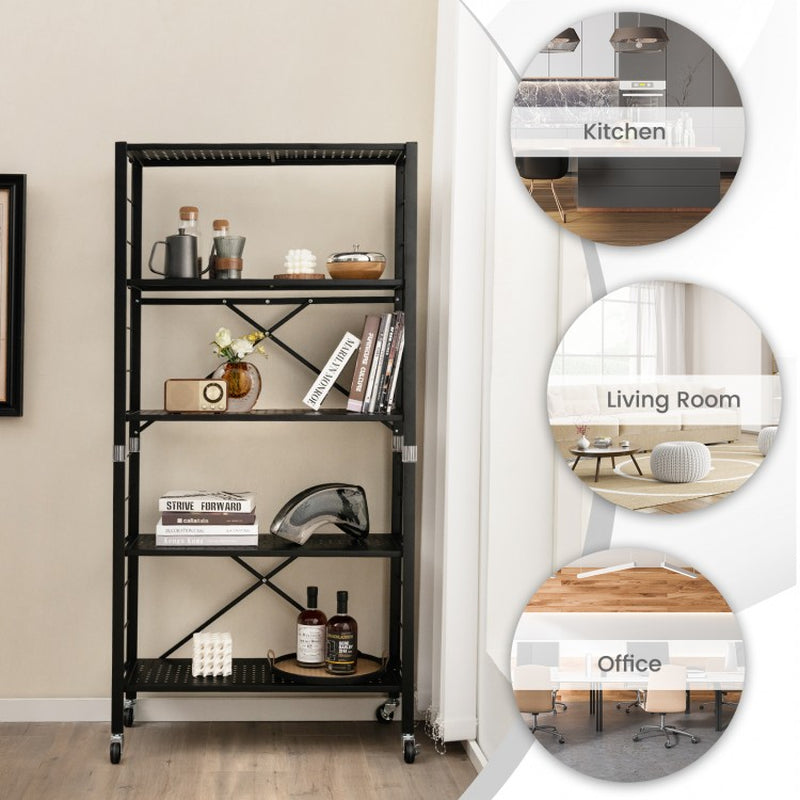 Adjustable 5-Tier Shelving Unit on Wheels for Garage, Kitchen, and Balcony Use