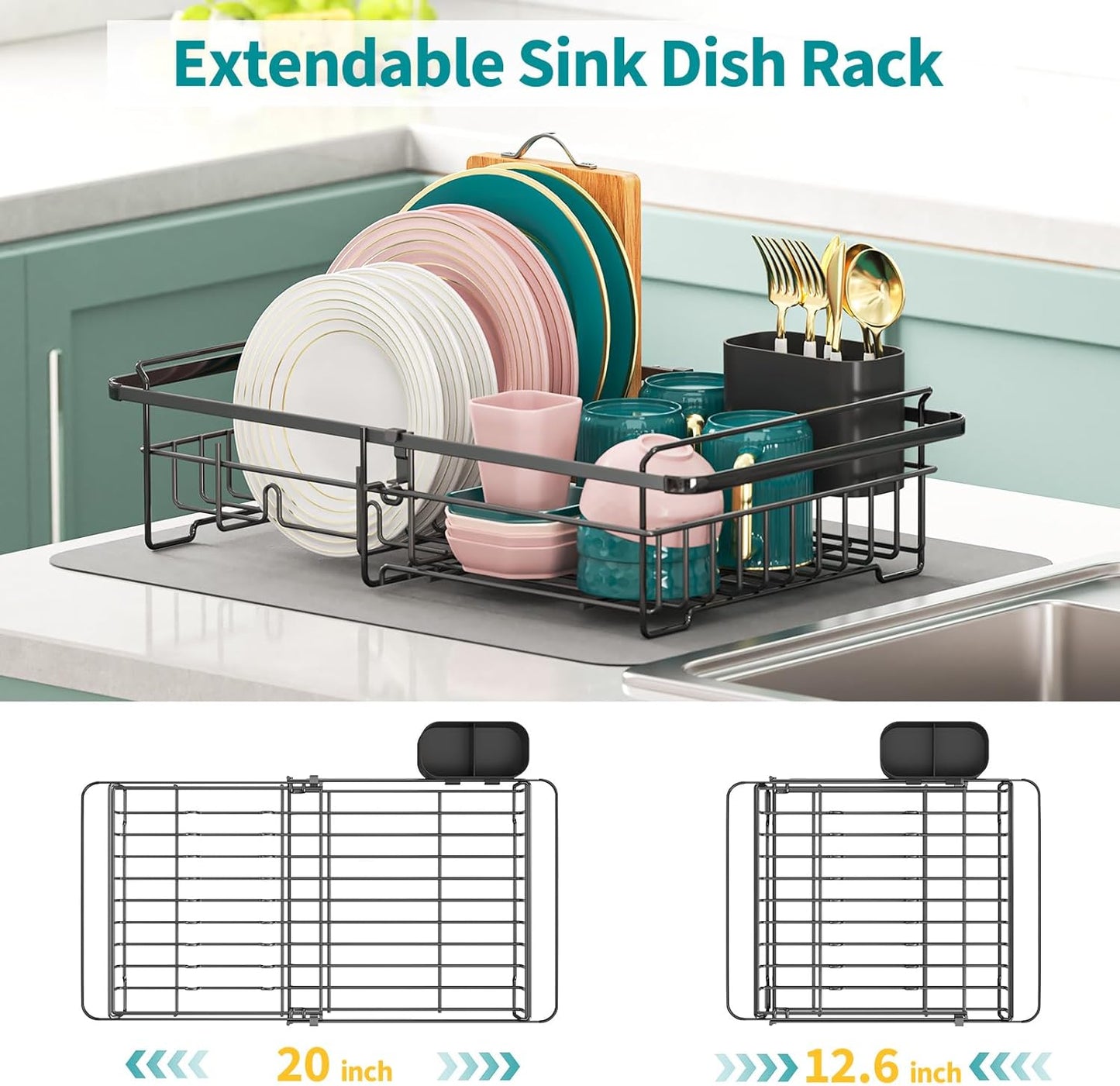 3-IN-1 design: in the sink, expandable over the sink or on the countertop with a mat at the bottom(mat not included). Extendable from 12.6" to 20" length to make it handy to place over a larger sink, fit your sink which is 12.6 to 20 inches length, meet your different needs for tableware storage.