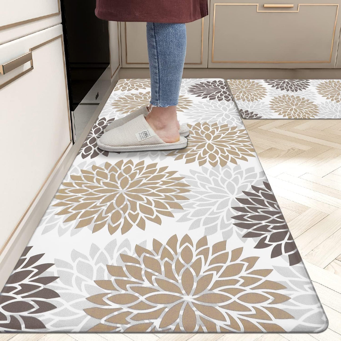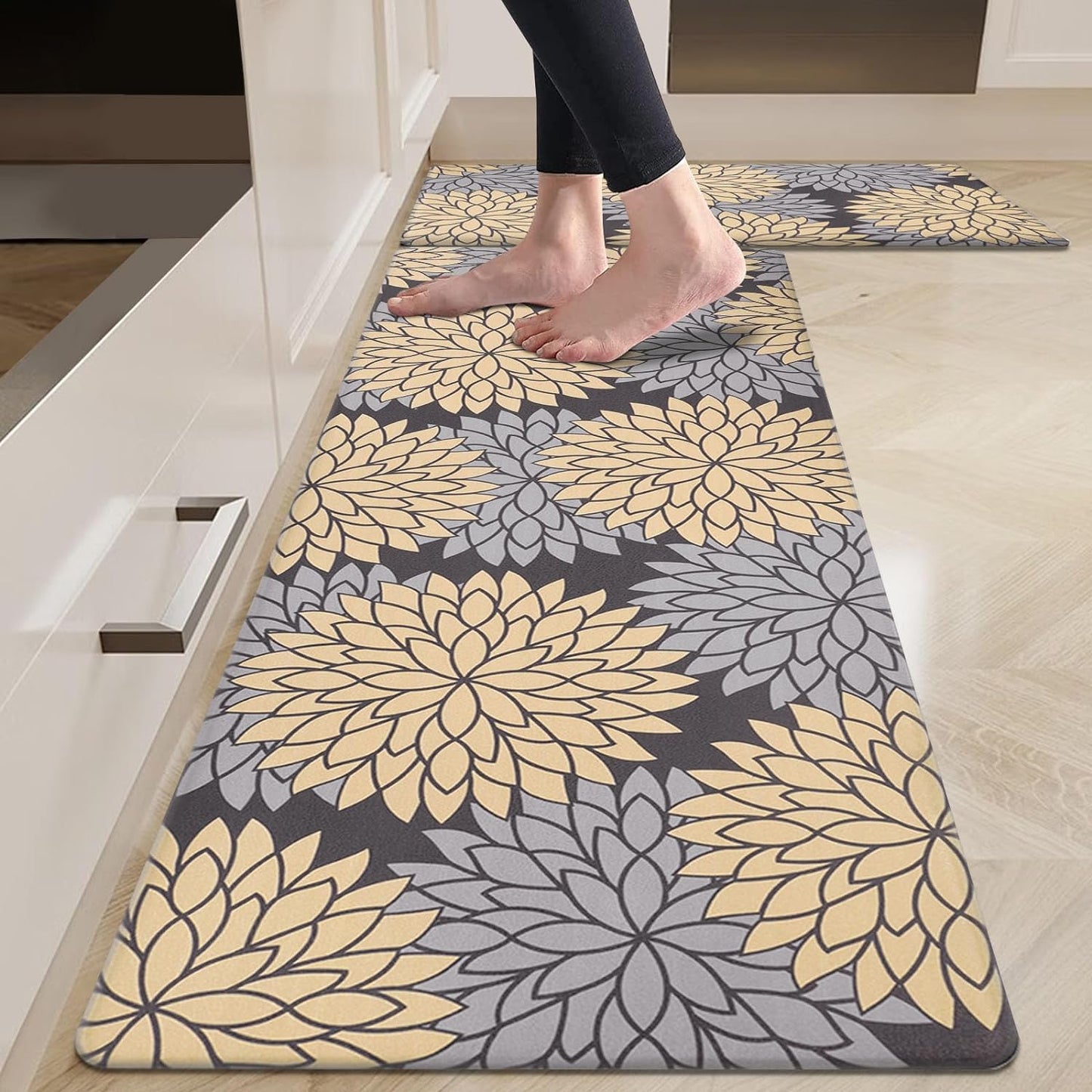 - Versatile Cushioned Kitchen Mat Set: HEBE thick cushioned kitchen comfort standing mat provides ample support for standing in kitchen, kitchen sink, stove, laundry room, office, farmhouse or any other high-traffic indoor or outdoor space. The neutral color matches any decor.Also be great gift idea for Thanksgiving,Christmas or any other holiday!