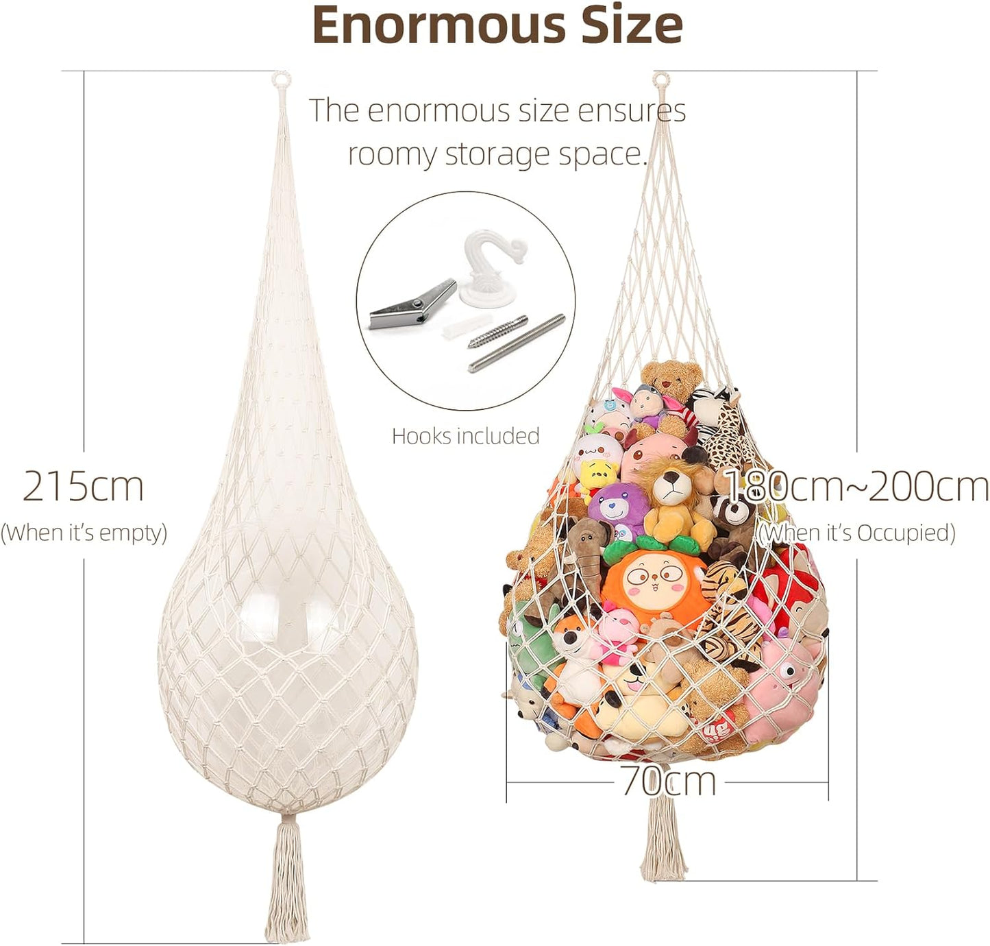 - šBohemian Style Space Saver-- This boho style adds a perfect sense of fashion to your home, with neat and cute storage methods, making it a practical decoration for kidsā rooms and elevating the taste of life to a higher level. Displaying all the plush toys as well as making full use of space and making the room more tidy and spacious, it will become a favorite corner for kids and a favorite space saver for moms.
