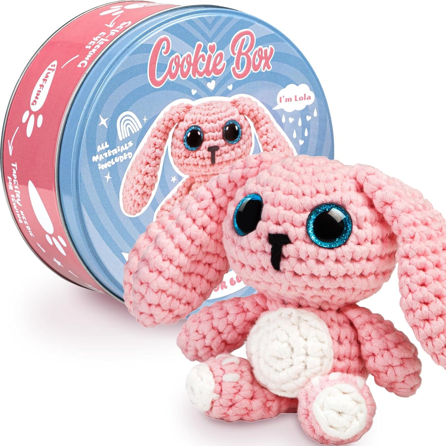 - 🛍 Kit Includes All You Need - This crochet kit for beginners has an ergonomic crochet hook, beginner-friendly yarn, stitch markers, safety eyes, blunt needle, stuffing, PDFs, and video instructions. Packed in an adorable metal tin that keeps your yarn organized and helps it unravel smoothly while you crochet.