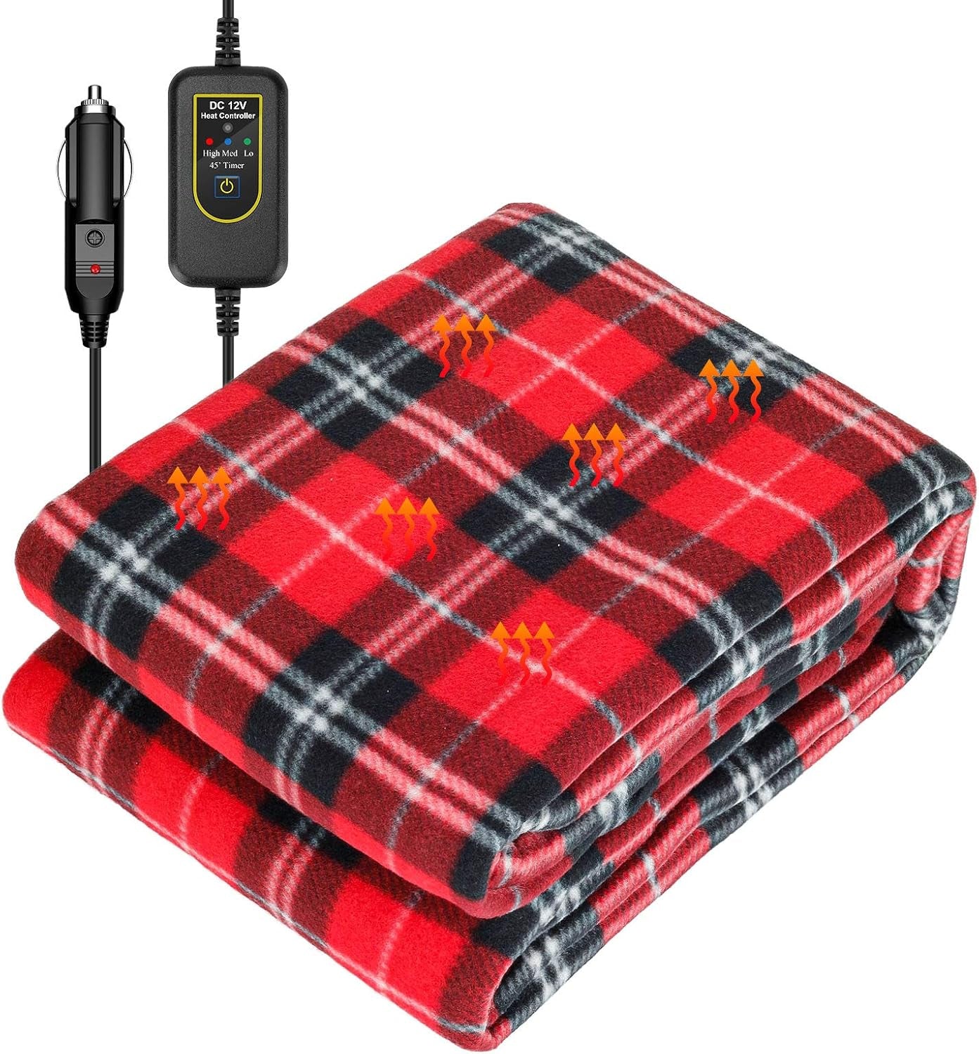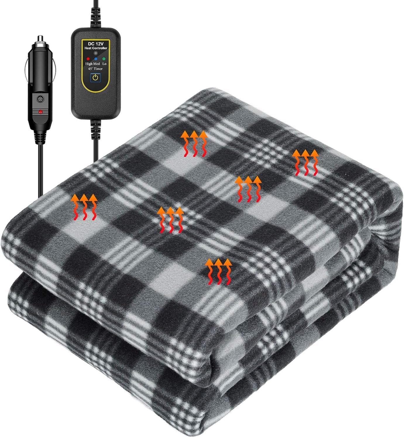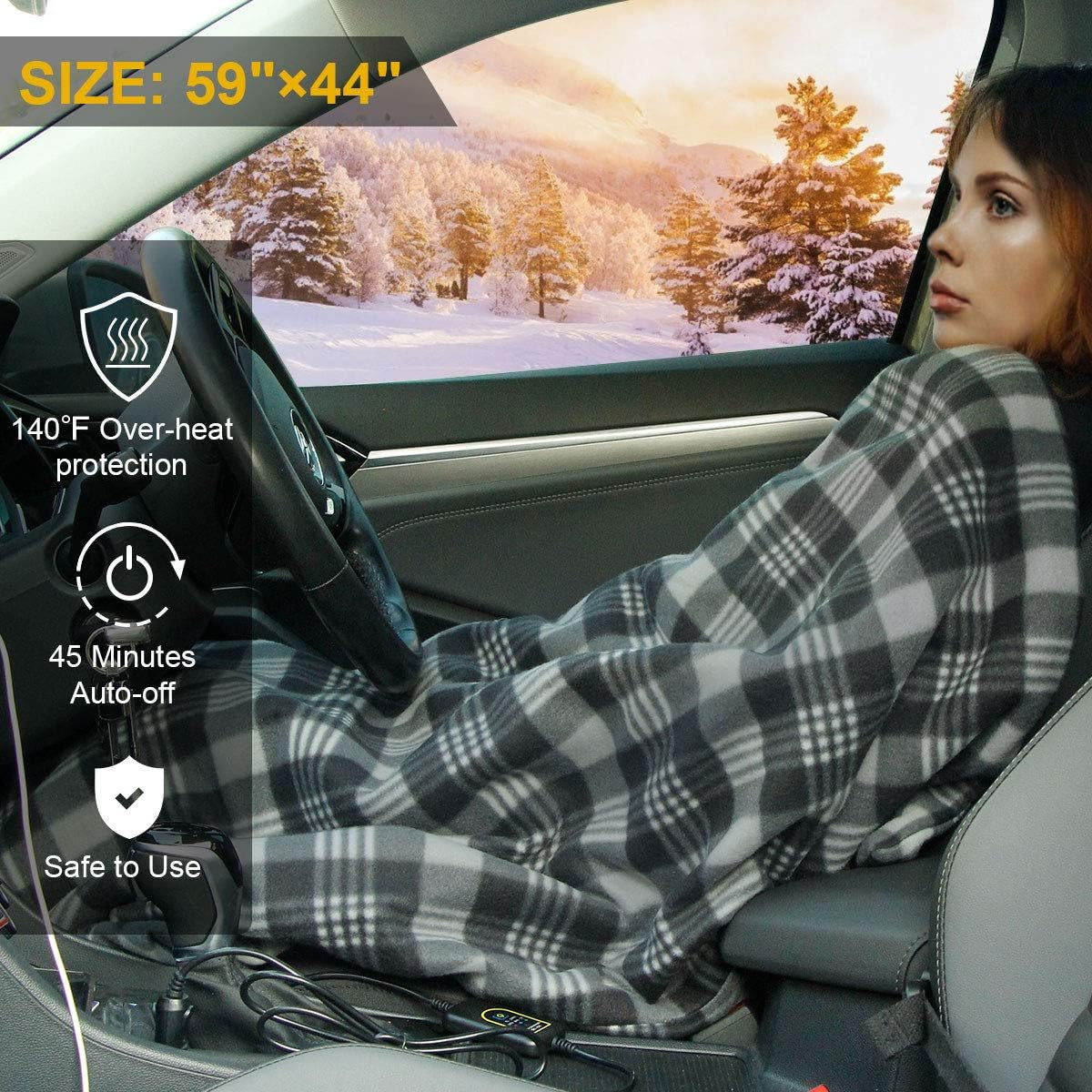 Heated Car Blanket 12V - High/Medium/Low Temp Control Travel Electric Blanket 59"X 44"