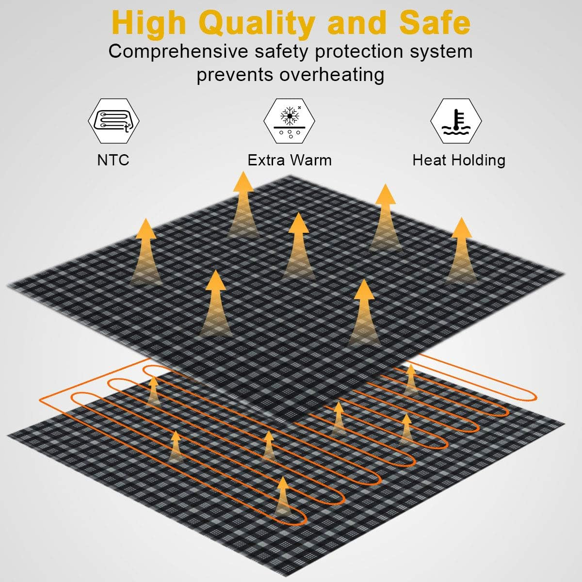HUTIGERTECH heated throw blanket is equipped with denser heating coils, which ensures fast, steady, and constant warmth. The enhanced internal wires are optimized for exceptional high performance with no discomfort. Quickly give you relaxing and huge warmth.