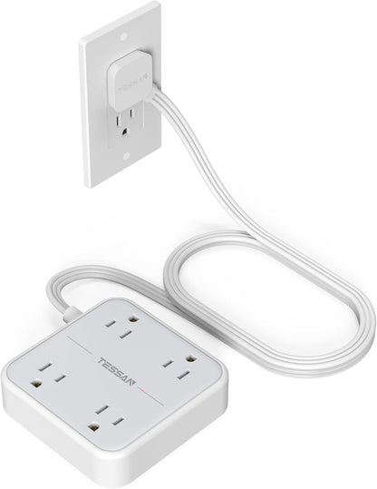 - Flat Head Power Bar: With only 0.31 inch ultra thin plug and 45 degree right angle design, which is mush slimmer than traditional plugs, can close to the wall easily and hide in the back of furniture, no waste for outlet and space
