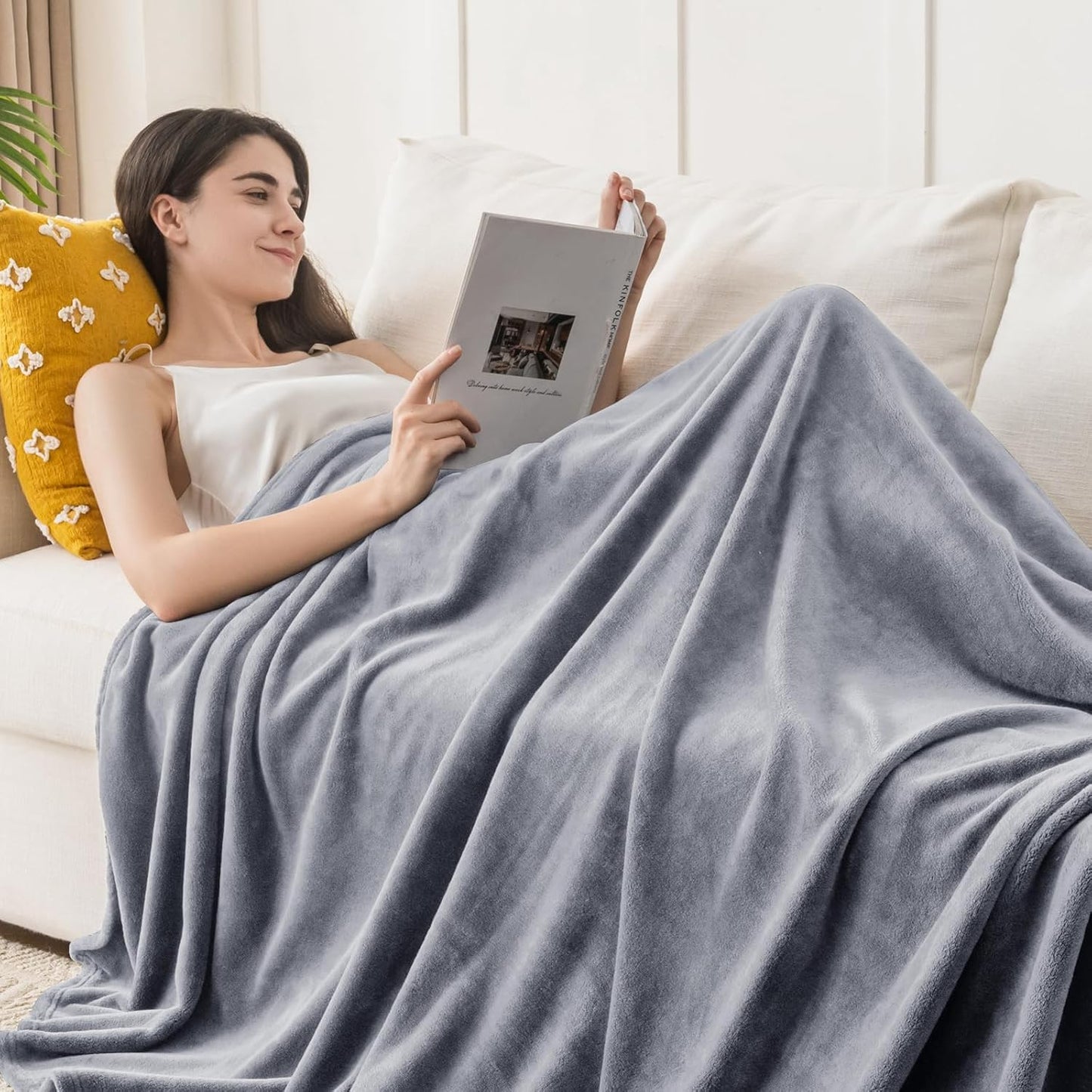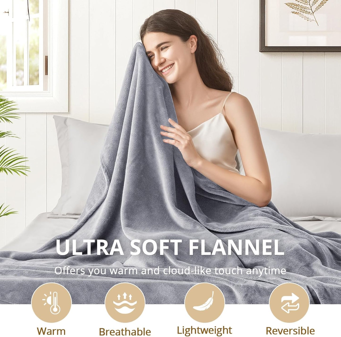 Fleece Throw Blankets - Couch, Cozy Lightweight Flannel, Warm Fuzzy Winter Unisex Blanket (Grey, 50" X 60")