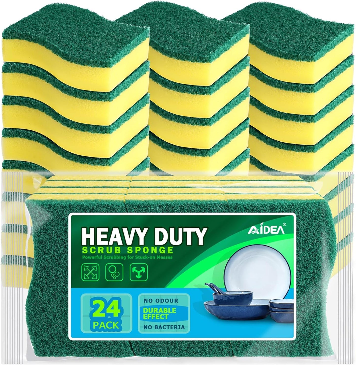 - Powerful Cleaning: AIDEA Heavy Duty Scrub Sponge is highly absorbent; features durable abrasive pads that effectively clean stuck-on food; the high-density sponge foams easily with minimal detergent; simply soak in water to fluff up instantly; ideal for tough kitchen messes