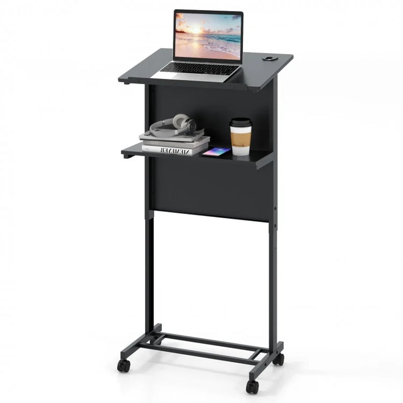 ● Move with Confidence: Built on a robust heavy-duty metal base, the mobile laptop cart is ready for action with 4 360° universal casters, including 2 lockable wheels for stability when you need it. Glide smoothly from room to room, the podium is ready to support you wherever your presentations take you.