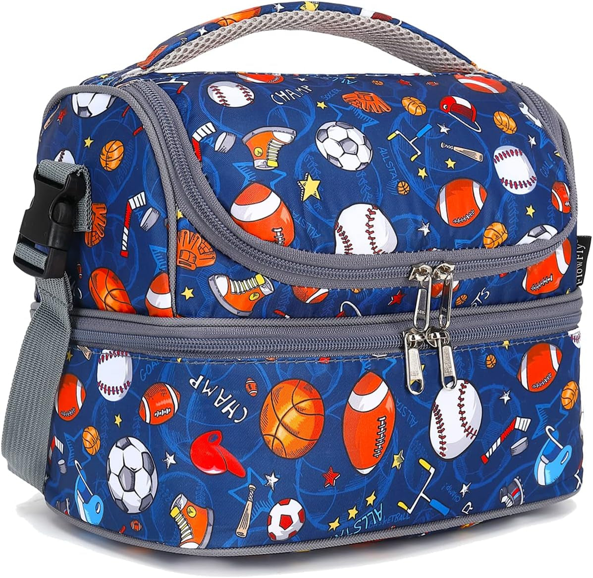 - ✿ Double Layer & Large Size::The dimension of the tough container is: L:28.5 × W: 21.5 × H: 25cm., but not too bulky. These two double-deck sections could separate cold or warm food. Top Compartment is for fruits, chips, snacks, drinks, the bottom compartment could give roomy storage space you need to hold your favorite meals,delies and lunch treat, you could fill with your lunch boxes, sandwich, food containers, condiments, fruit salad bowls, other office lunch food and so