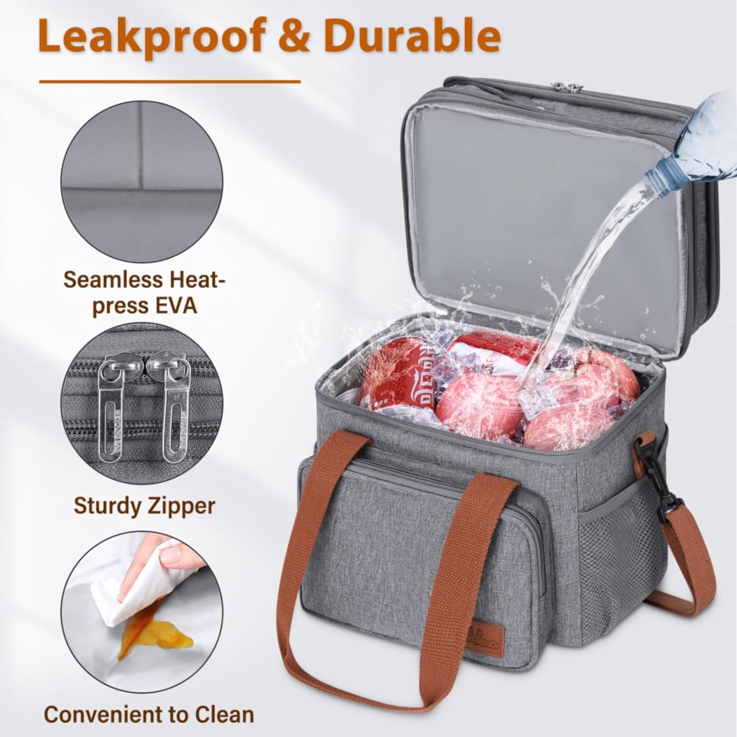 Insulated Lunch Bag for Adults - Leakproof Thermal Cooler, Expandable Large Capacity, Reusable Double Deck Design