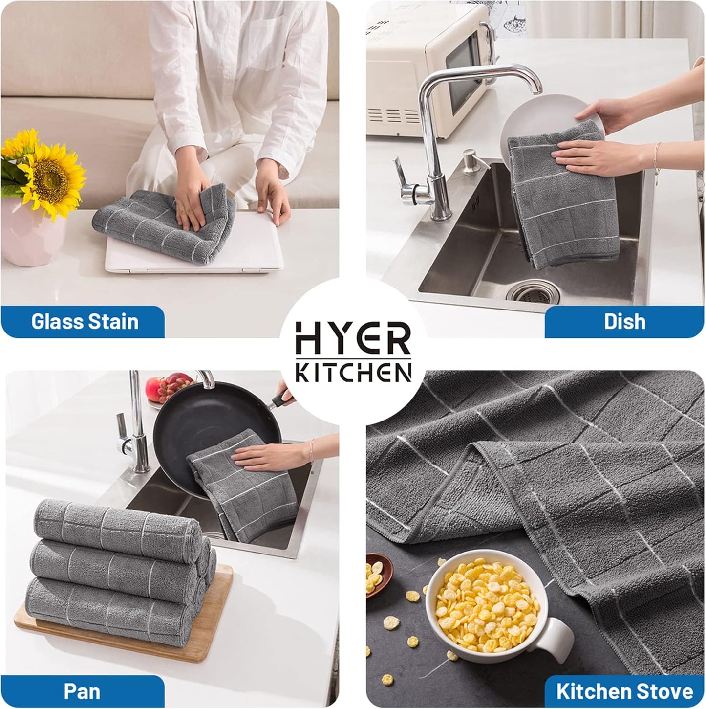 - HIGHLY ABSORBENT - This classic gray check patterned kitchen towels are engineered to soak up lots of liquid, much more absorbent than other towel and drys fast.