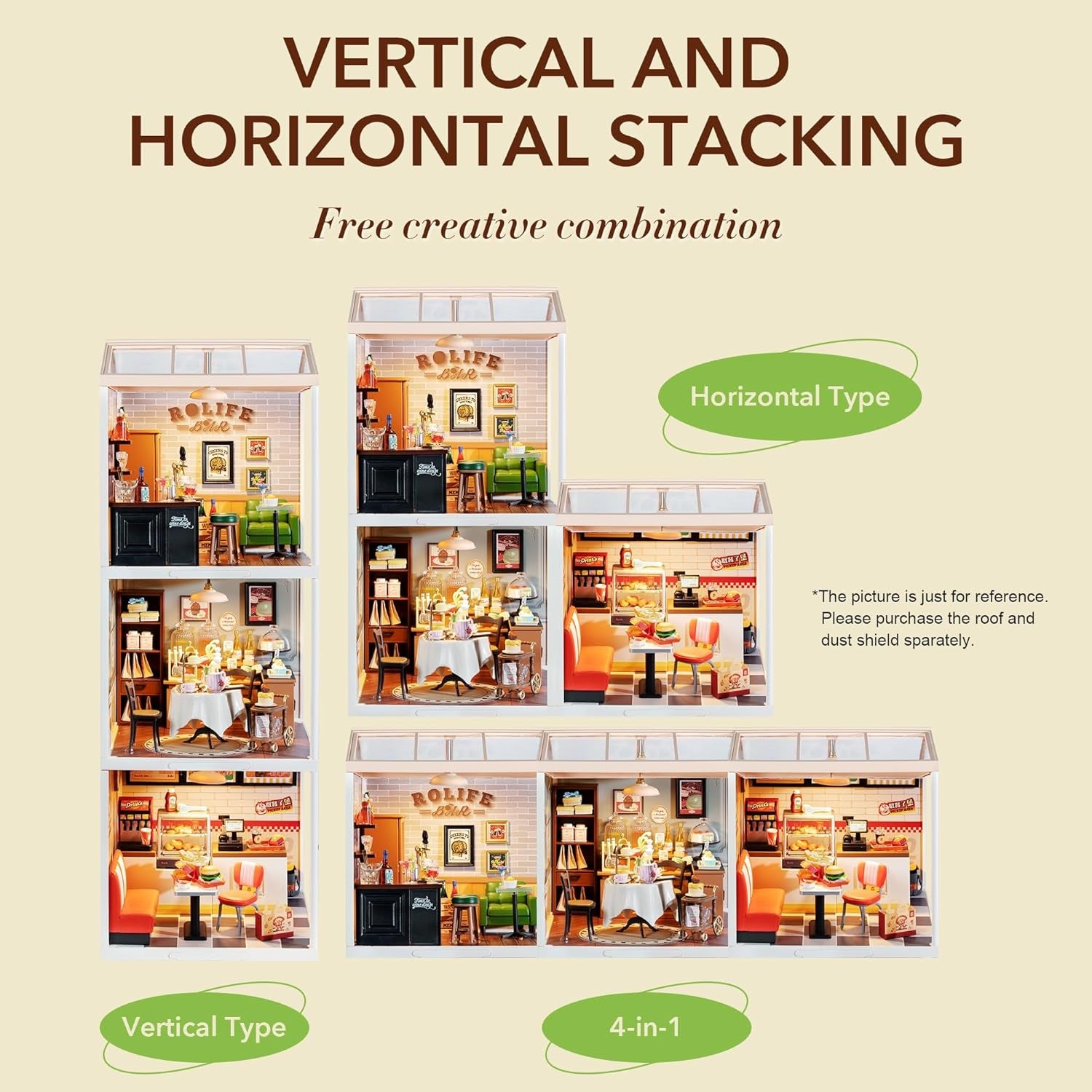 ROBOTIME Miniature House Kit DIY Plastic House Building Toy Set with LED Tiny Store Making Kit Model Craft Hobby Unique Gift (Leisurely Cheers Bar)