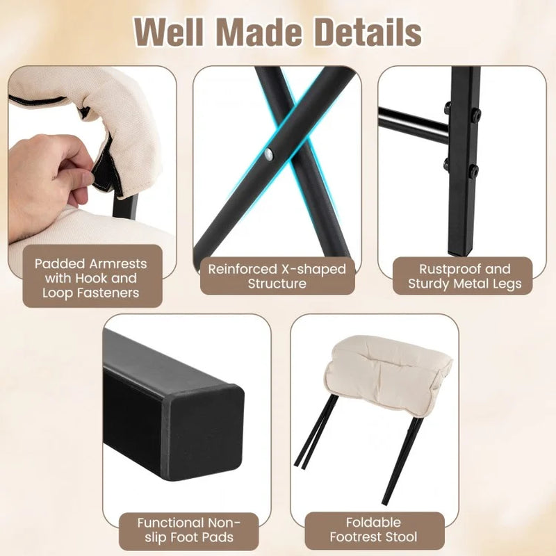 ● Stable Construction: The rustproof and sturdy metal legs ensure overall steadiness. In addition, the functional non-slip foot pads as well as the reinforced X-shaped structure enables the footrest to stand more stably.