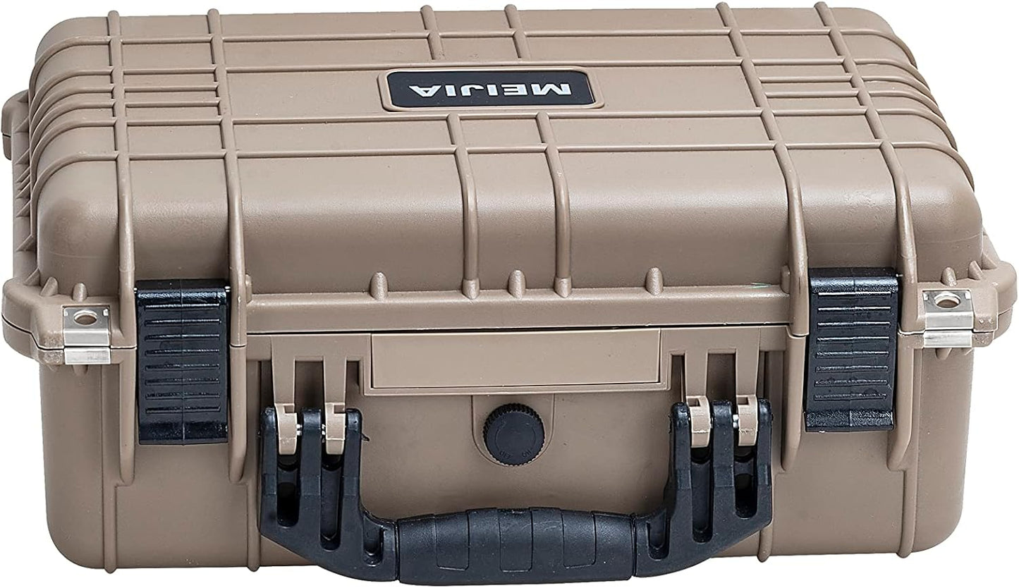 Portable All-Weather Waterproof Camera Case - Customizable Foam Insert - Drones, Equipment, Firearms, 15.98 x 12.99 x 6.85 Inches (Desert Tan)