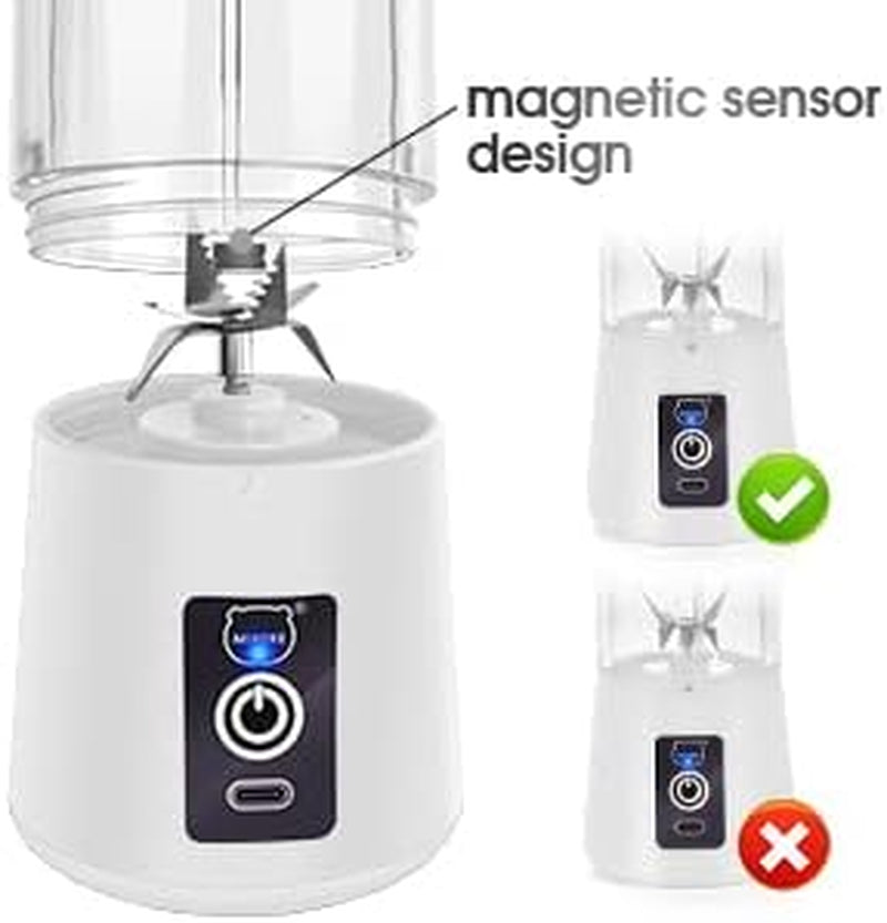 Portable USB Rechargeable Personal Blender with 3D Six-Blade Technology for Smoothies - White