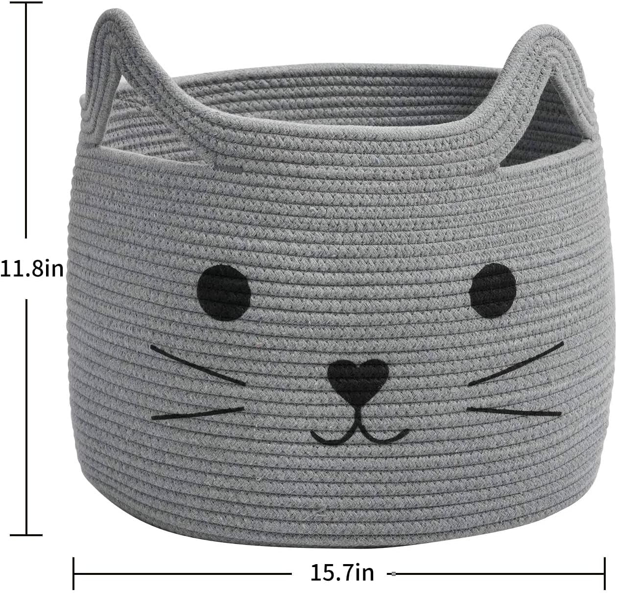 - Dimensions: 15.7" L×11.8" H. Can be used as a storage basket to organize your blankets, clothes, etc, or as a woven basket to let your cats, dogs and other small guys sleep in. It will be the home for these small guys if you put a cushion in the basket
