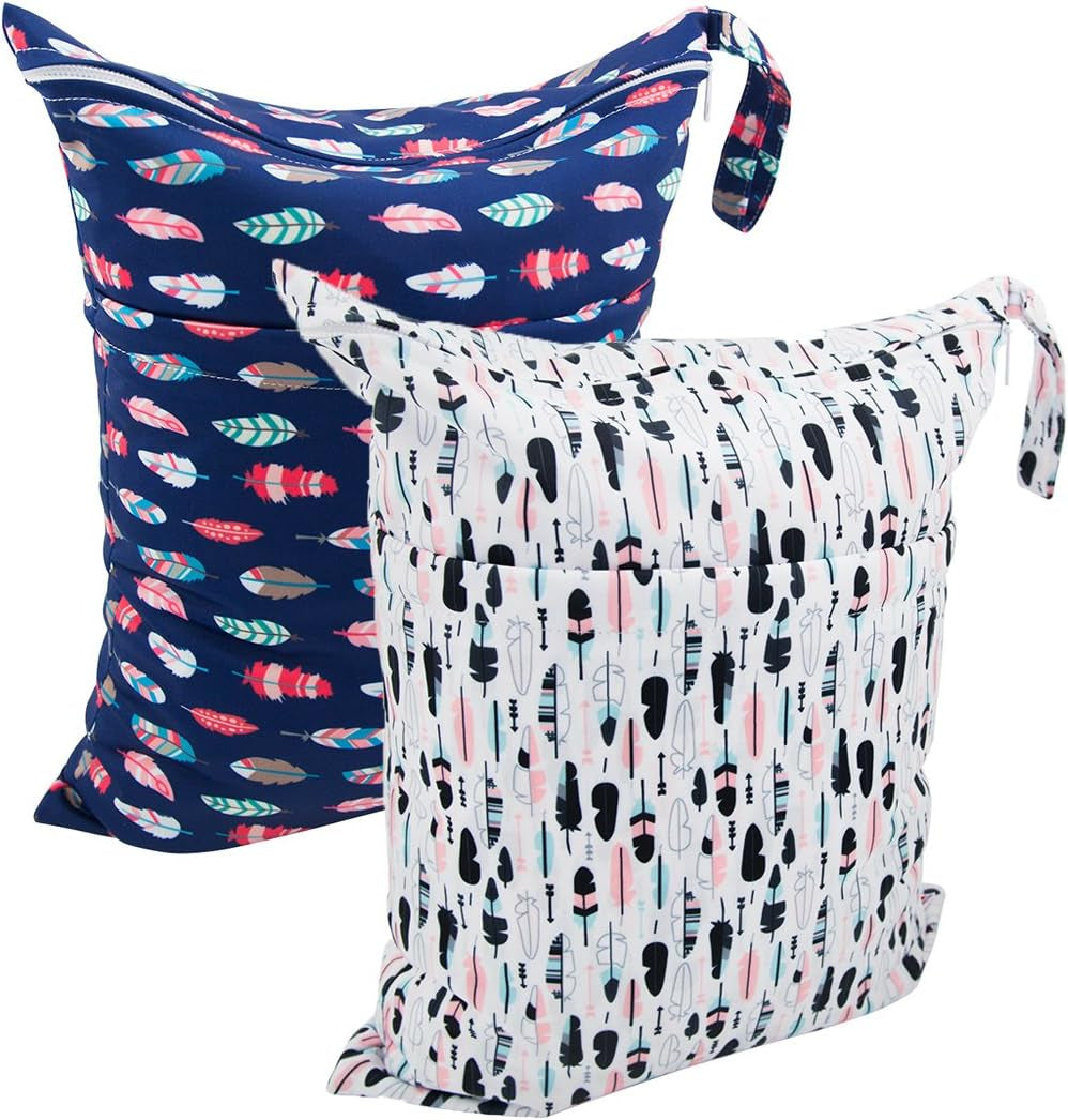 Reusable Waterproof Baby Wet/Dry Bags - Dual Zippered Pockets - 2 Pack for Travel