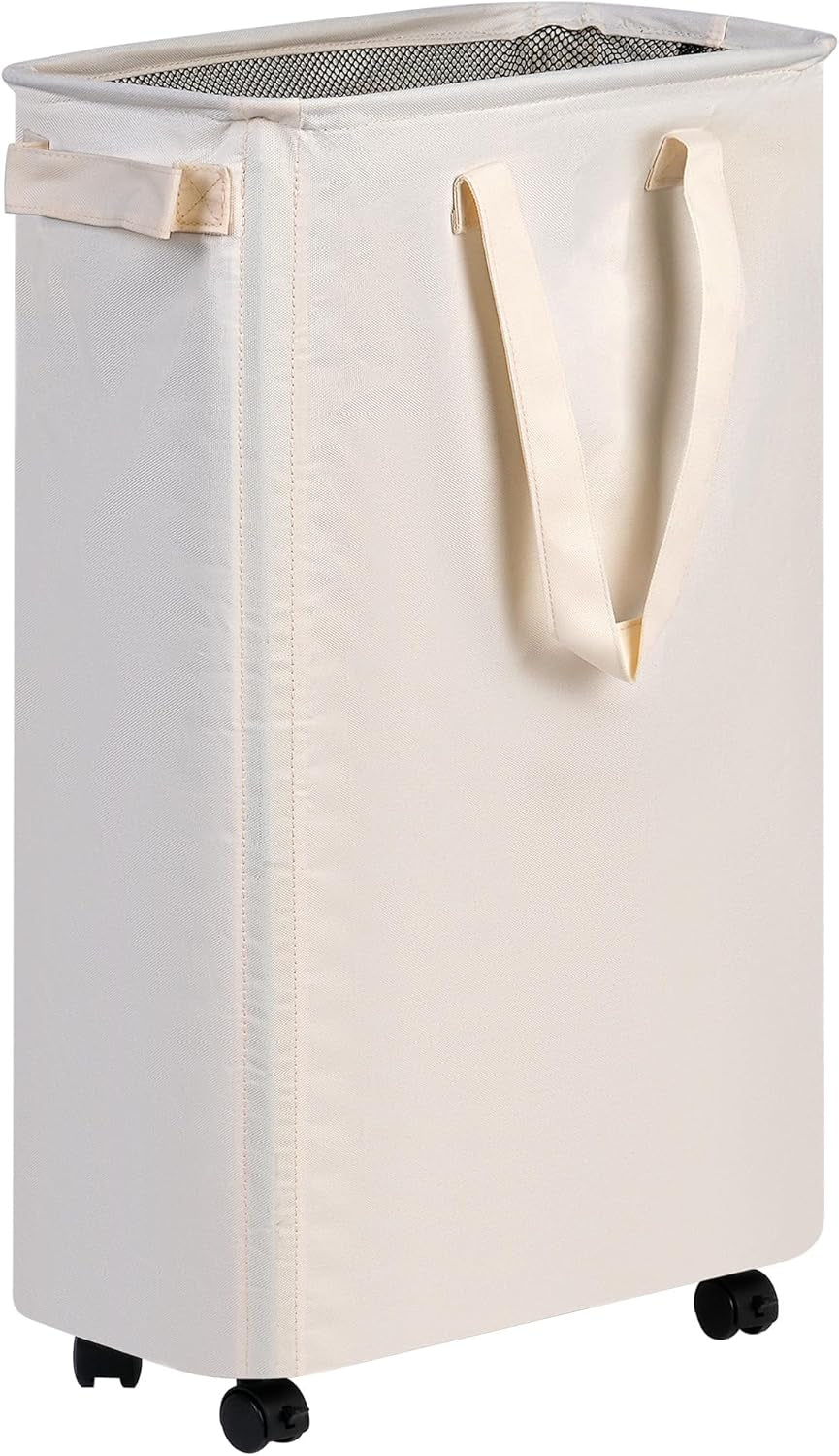 Slim Rolling Laundry Basket - Wheels, 12.7 Gallon (48L) Capacity, Beige