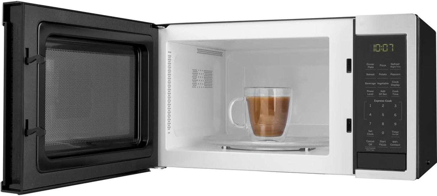 This GE .9 cubic feet 900 watt Stainless Steel microwave uses latest smart home skill for voice for hands-free convenience. This is the ideal size for any home or apartment kitchens, college dorm rooms or office break rooms. Sensor reheating lets you optimally cook and reheat the seven most popular food items (beverage, dinner plate, pizza, popcorn, potato, reheat and vegetables) with the touch of a button. Choose from ten power levels up to 900 watts. The electronic digital display has a clock function and can also display a countdown timer as well as the cooking time remaining. And, the classic Stainless Steel exterior will look good in any kitchen.