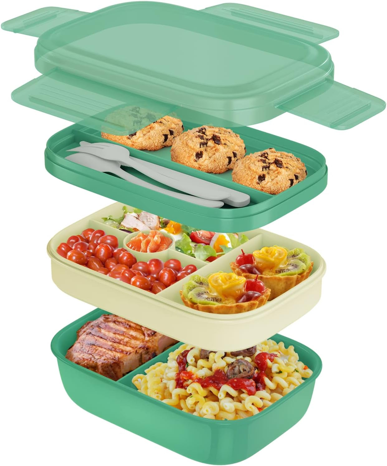 - 【Suitable for Adults/Kids】This large capacity bento lunch box can accommodate adult food needs and children's various nutritional intakes, ideal for office, school, gym, and picnic use, The built-in knife, fork, and spoon are always at hand for easy meals on the go.