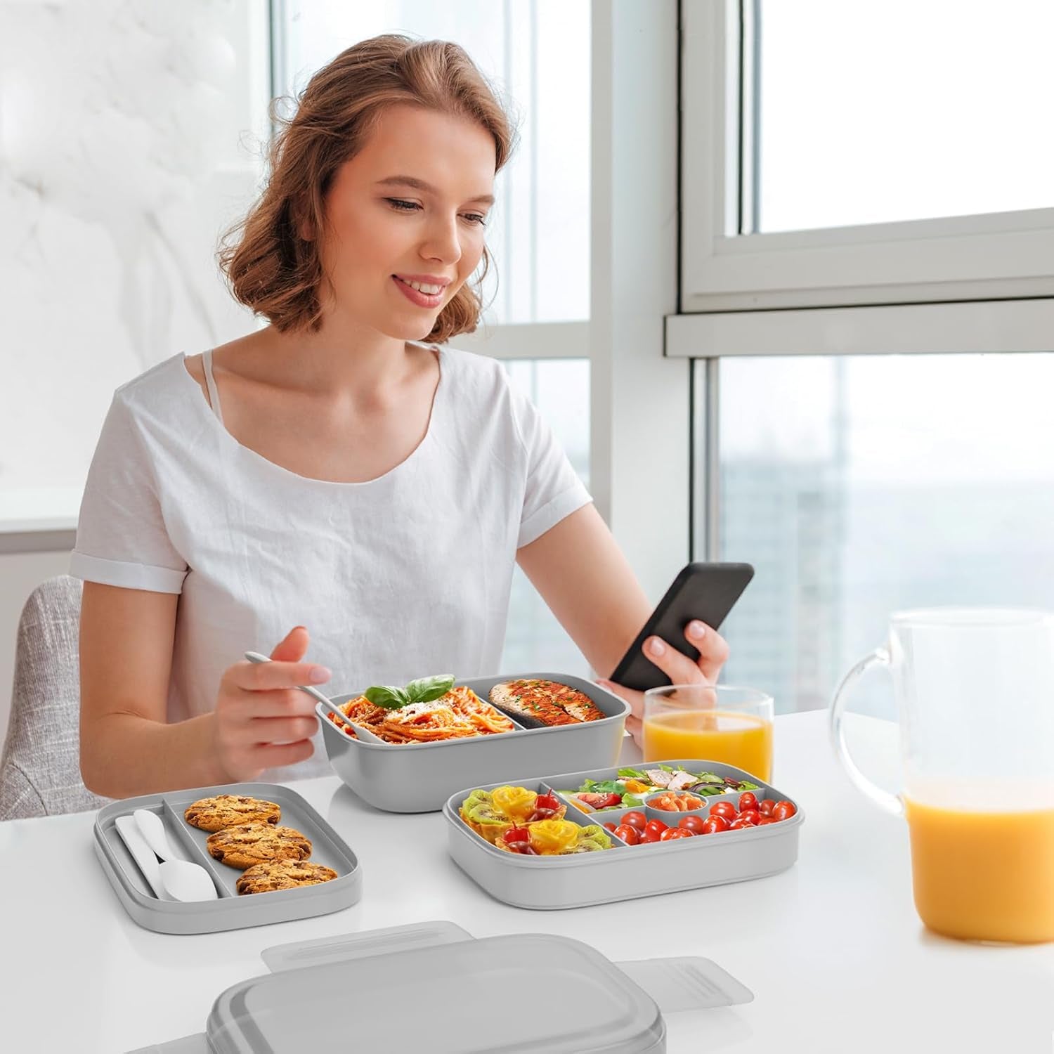 - 【Leak-proof Design】Each layer of this lunch containers is sealed with high-quality silicone, and the top cover has 4 reinforced locks, so you don't have to worry about food leakage; 8 compartments can effectively prevent food from mixing together and maintain the original taste of the food.