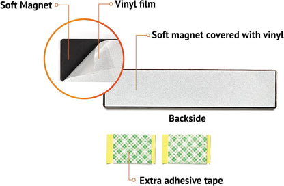 - Strong magnetic backing for easy attachment (adhesive tape for non-magnetic doors)