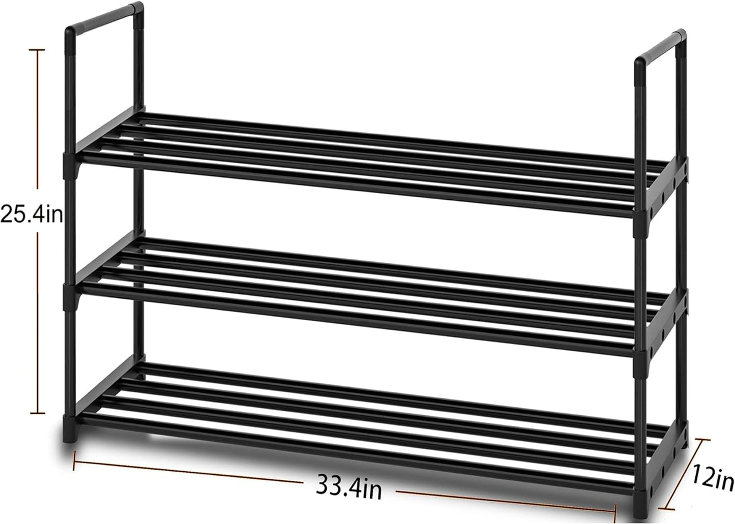 Sturdy Metal Shoe Rack Organizer - 3-Tier Free Standing Storage Solution for Entryway and Closet
